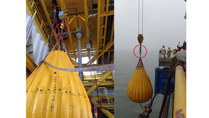 通過無線測力環(huán)上配備的手持遙控器,操作者可以在保持足夠的測試安全距離的前提下隨時準確掌握水袋的注水量在什么時候可以達到測試所要求的水平,防止注水不足或過多而導致測試結(jié)果不準確。在這一過程中,各種海洋環(huán)境條件,如風速和浪高,對于測試能否安全進行有很重要的影響。